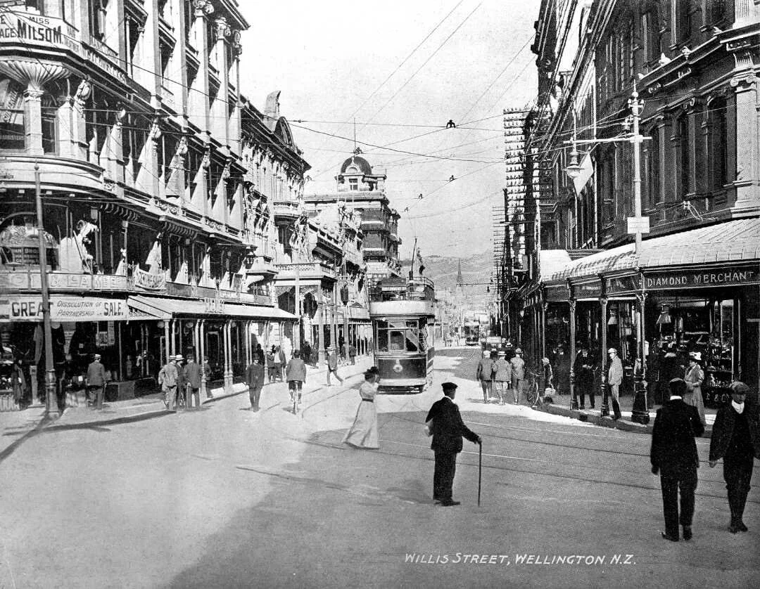 Willis Street, Wellington, in 1904. Willis Street, Wellington. Creator unknown : Photographs of Wellington. Ref: 1/2-008002-F. Alexander Turnbull Library, Wellington, New Zealand. /records/22886826