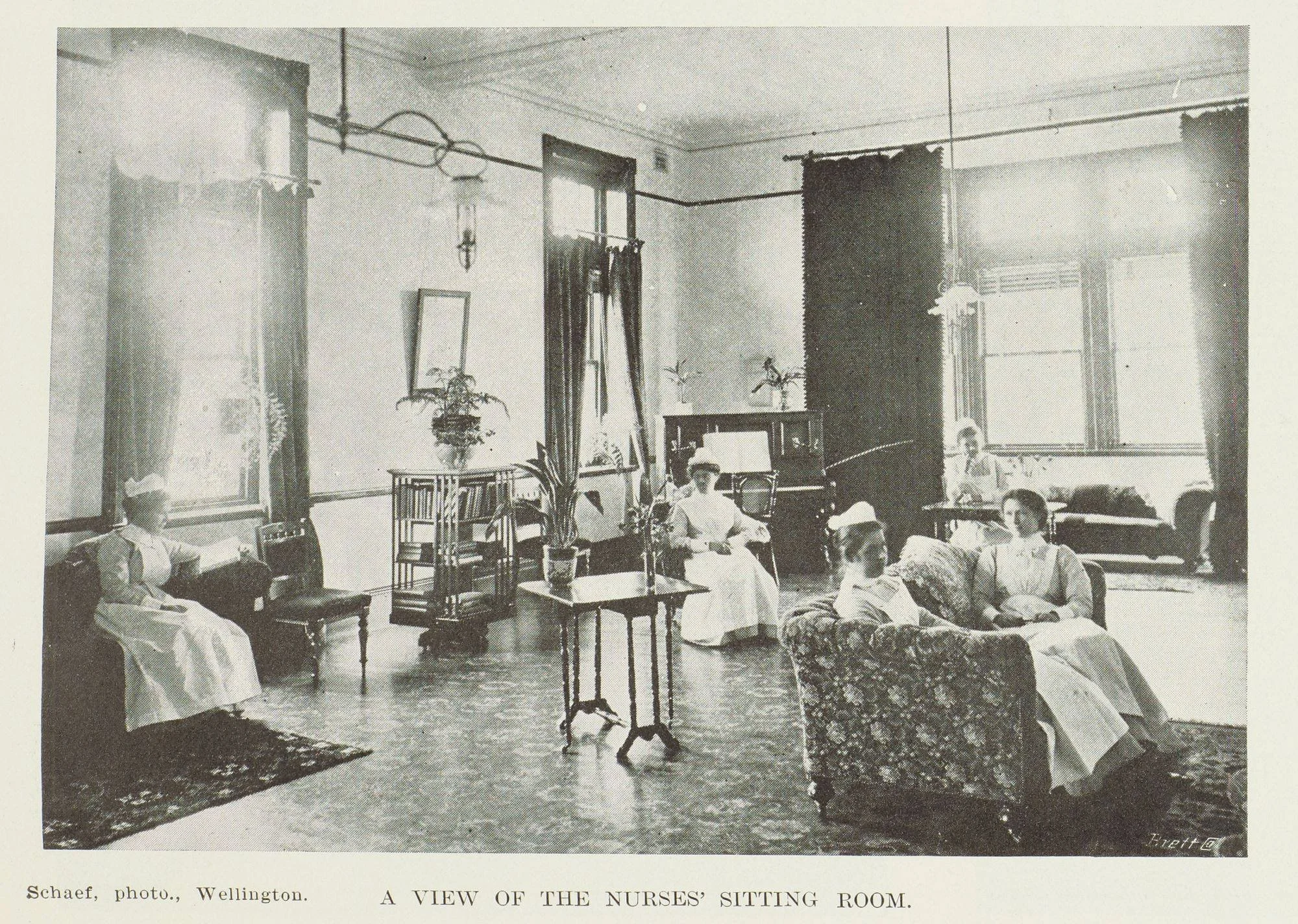 A view of the nurses' sitting room. Published in ‘The New Zealand Graphic’ on 22 September 1906. Photo courtesy of Auckland Libraries Heritage Collections NZG-19060922-0008-04