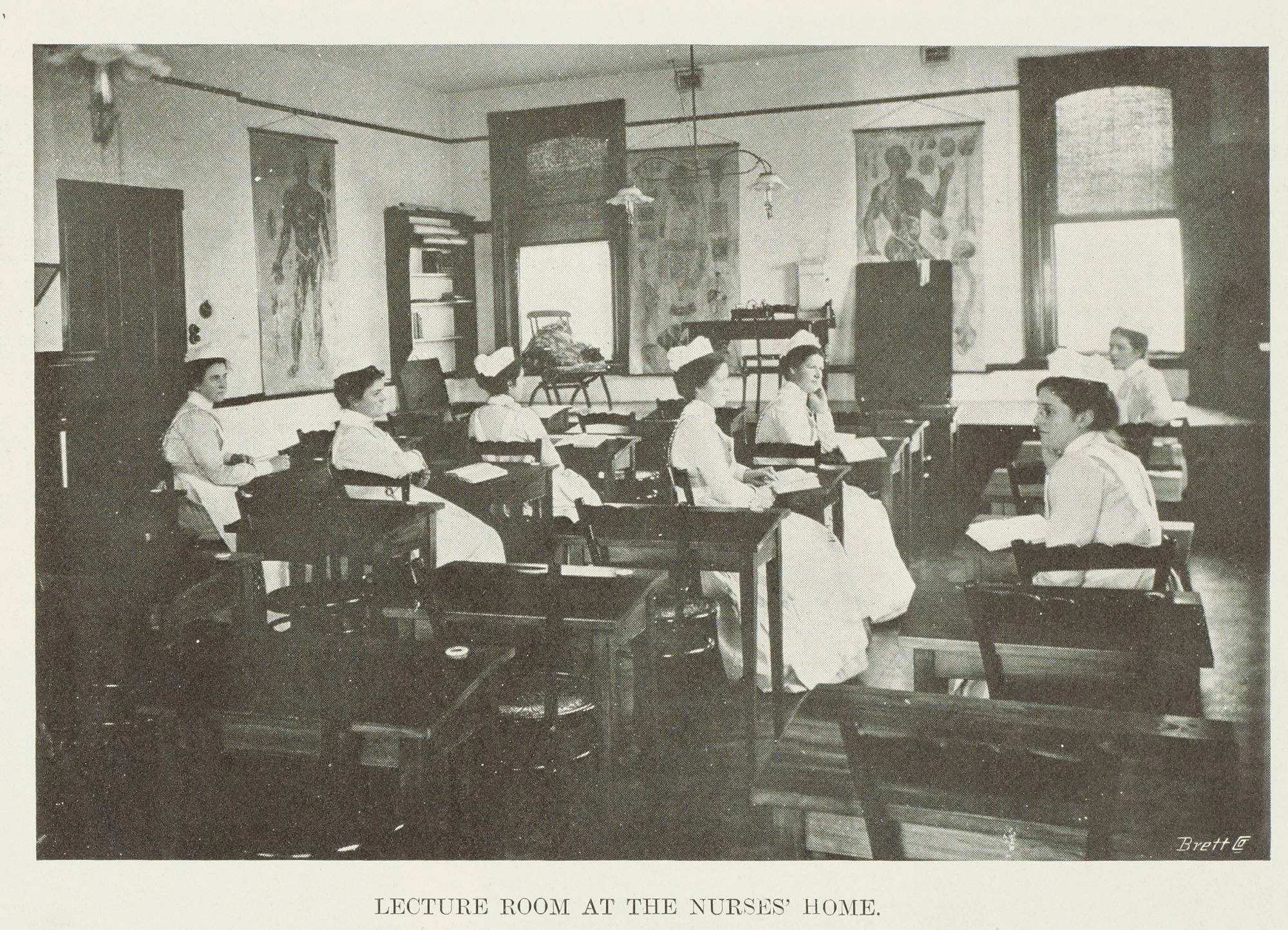 Photograph of the lecture room at the Wellington Hospital nurses' home. Published in ‘The New Zealand Graphic’ on 22 September 1906. Photo courtesy of Auckland Libraries Heritage Collections NZG-19060922-0008-01.